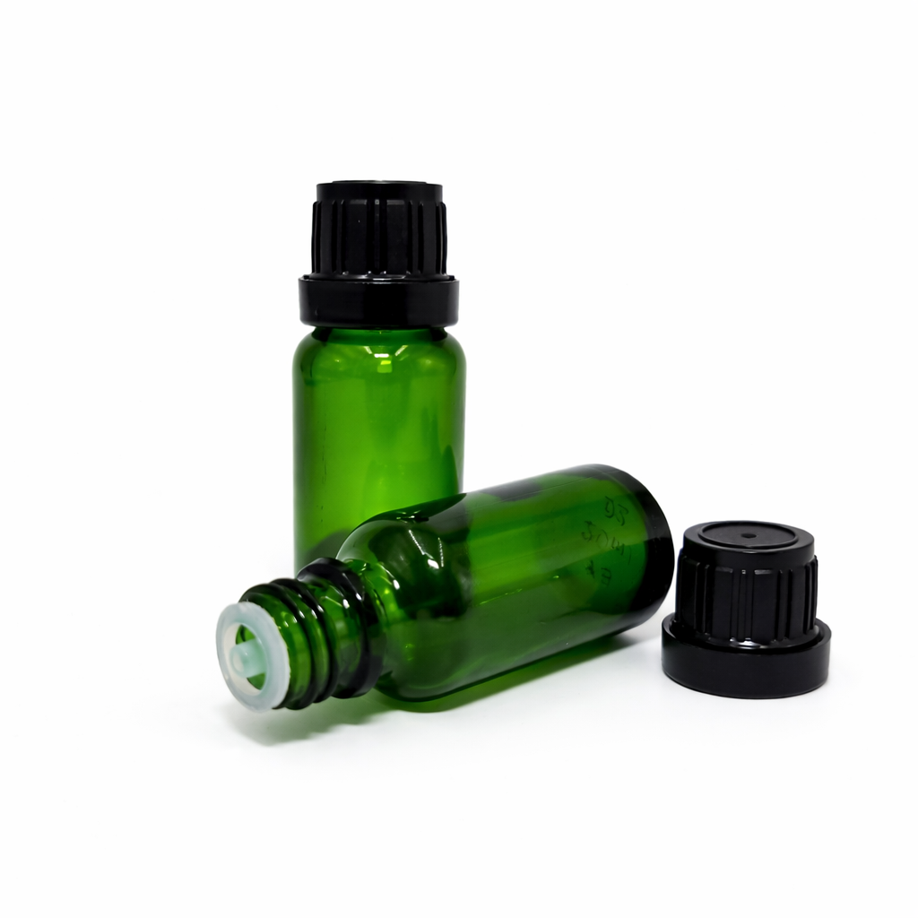 20ml Green Dropper Bottle – Euro Cap & Insert – Black