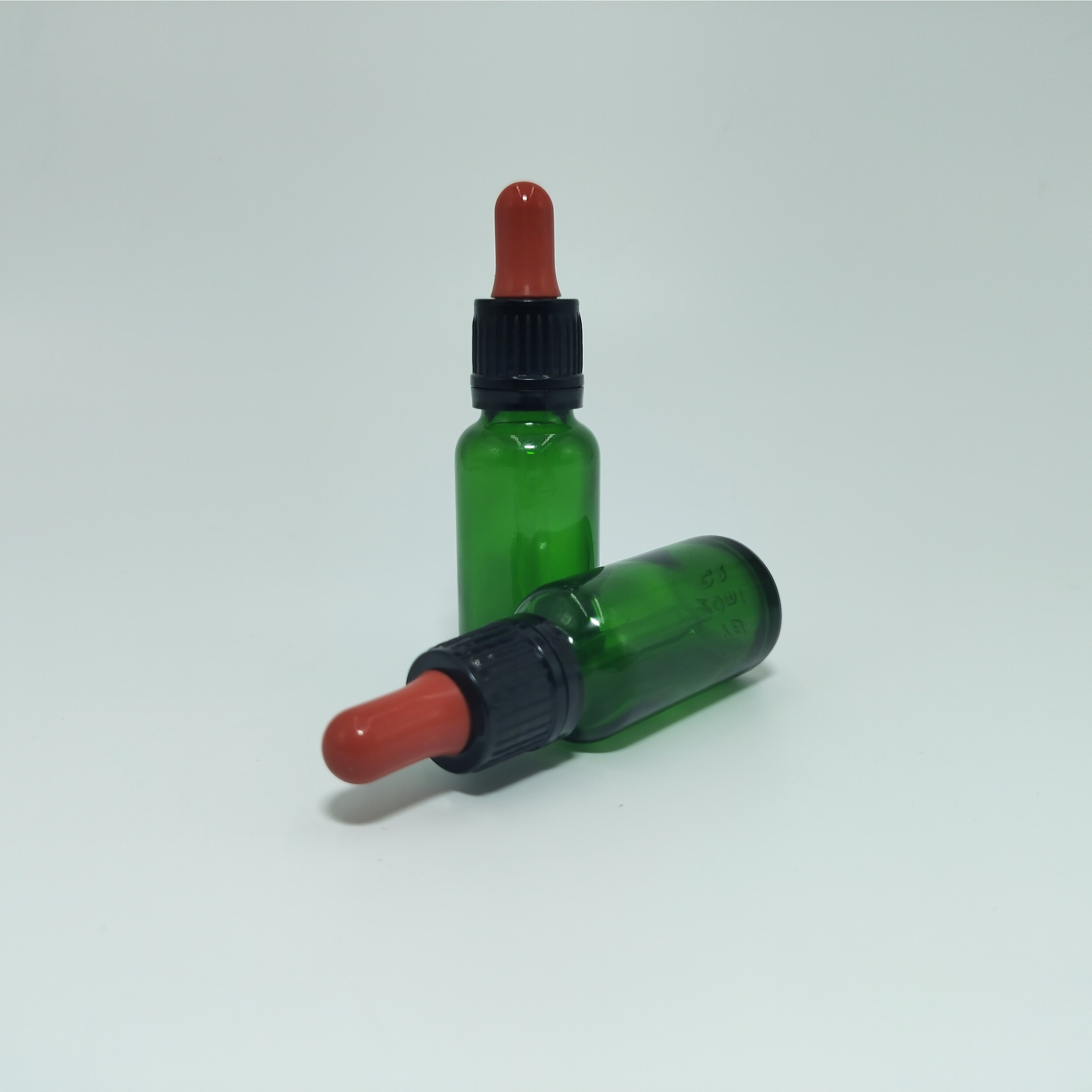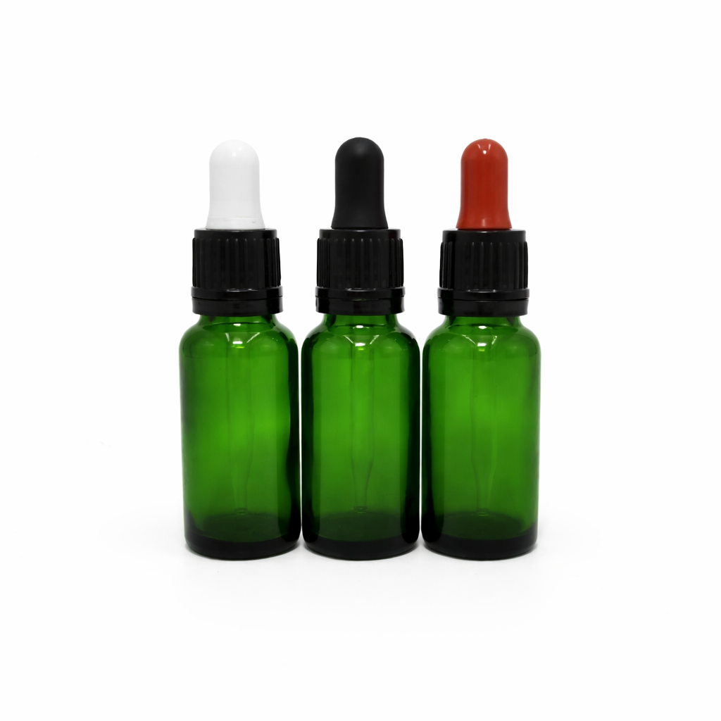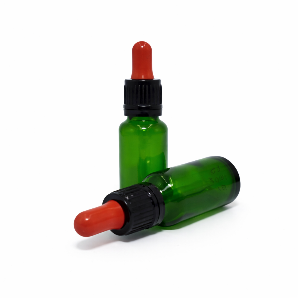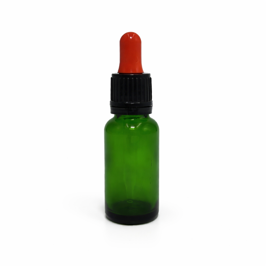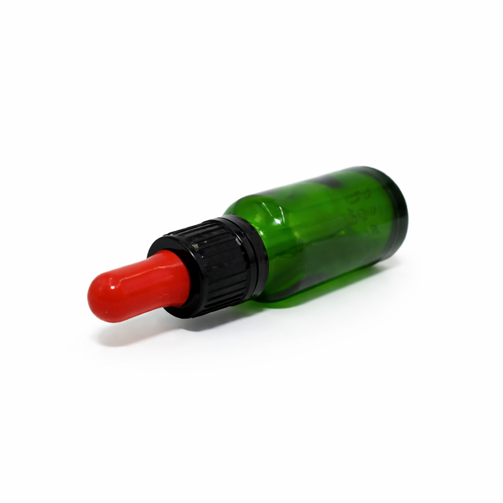 20ml Green Dropper Bottle – Flat Black Cap with Seal & Red Teet