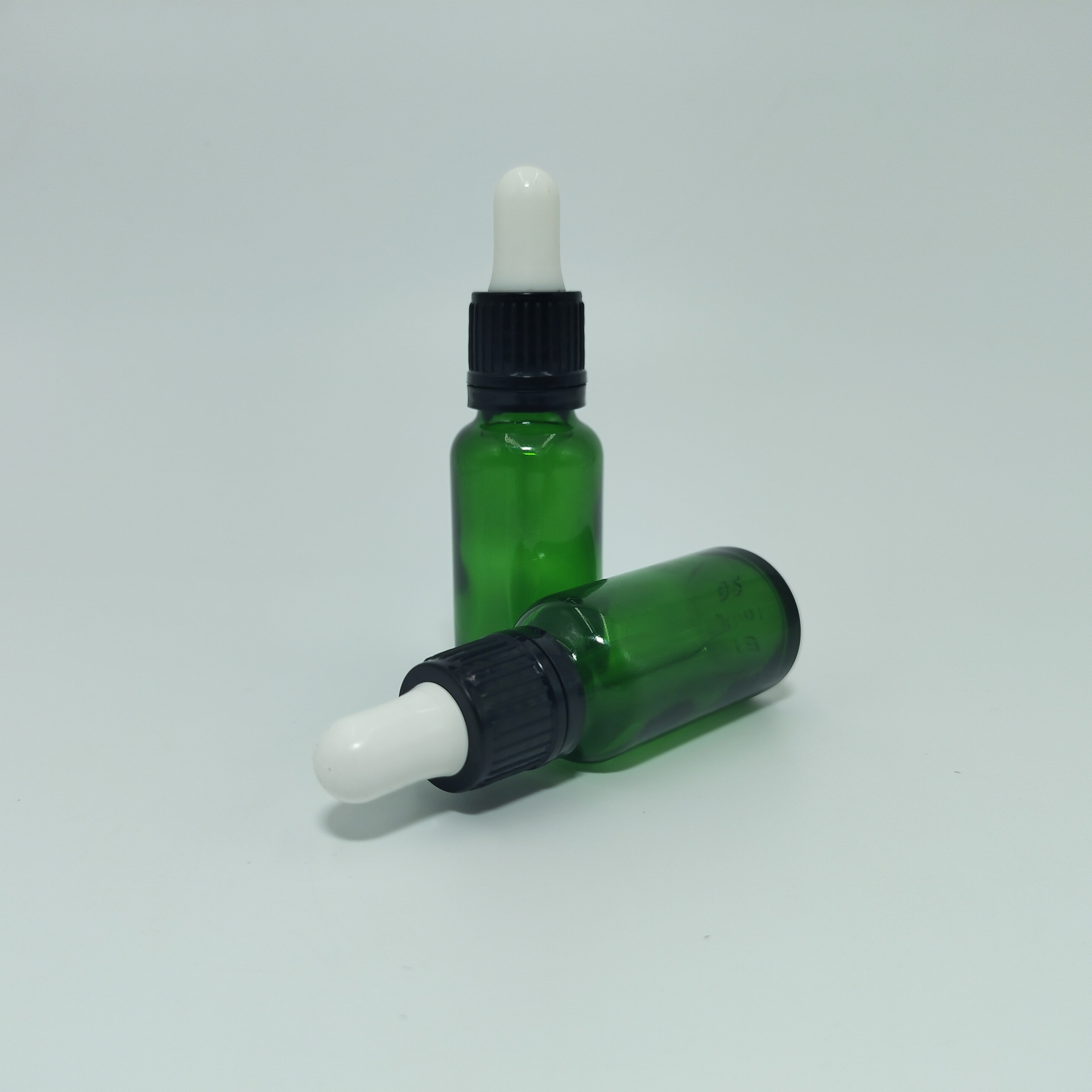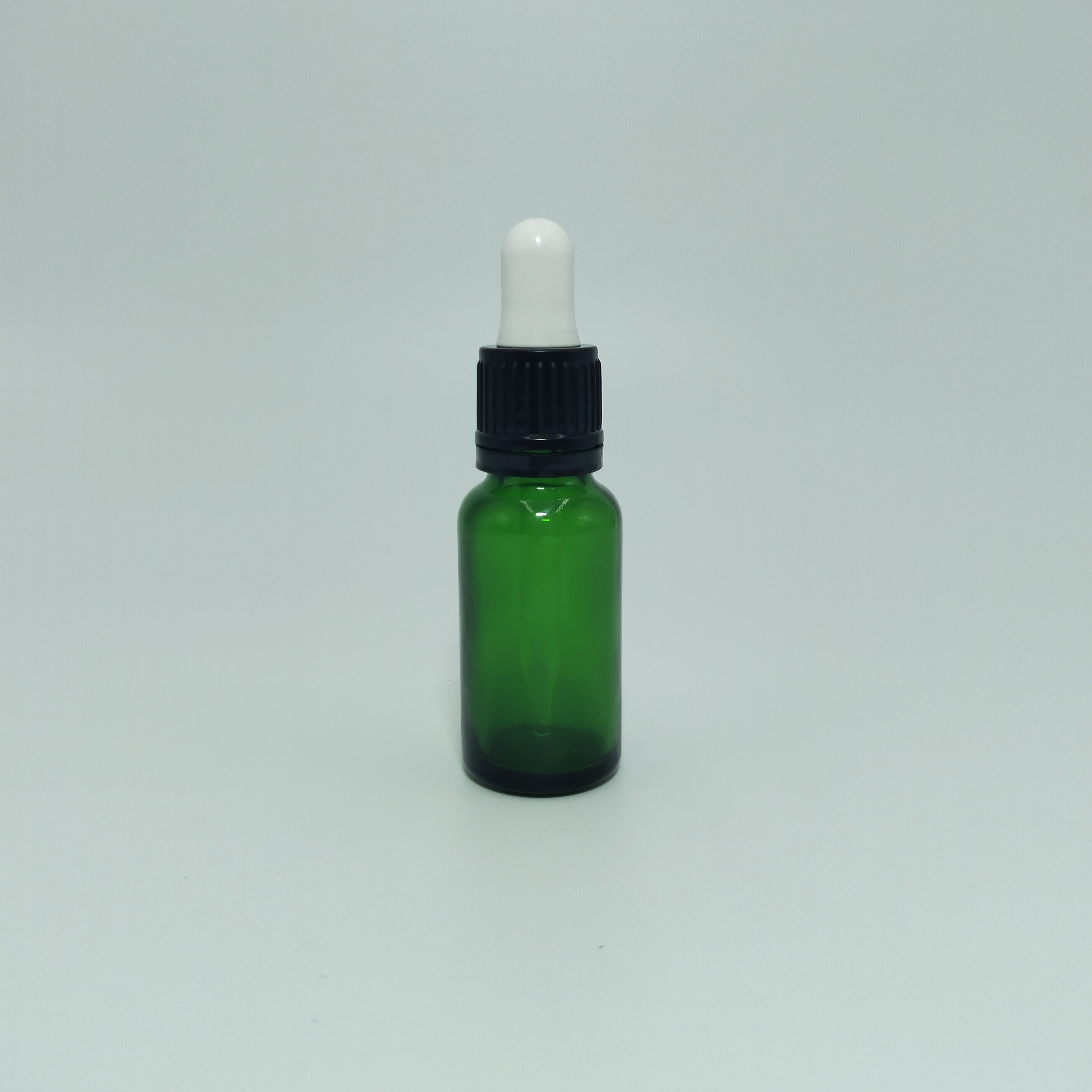 20ml Green Dropper Bottle – Flat Black Cap with Seal & White Teet