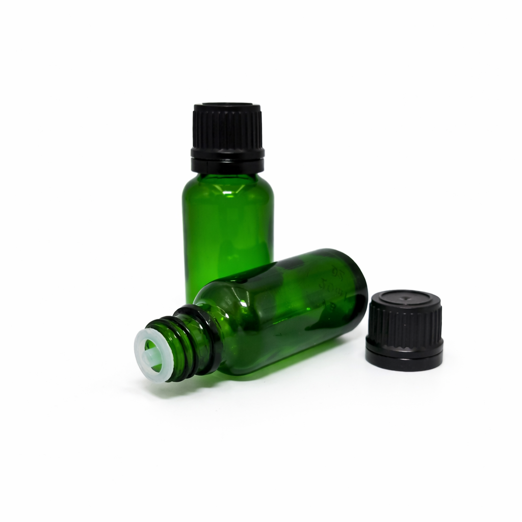 20ml Green Dropper Bottle – Flat Cap & Insert – Black