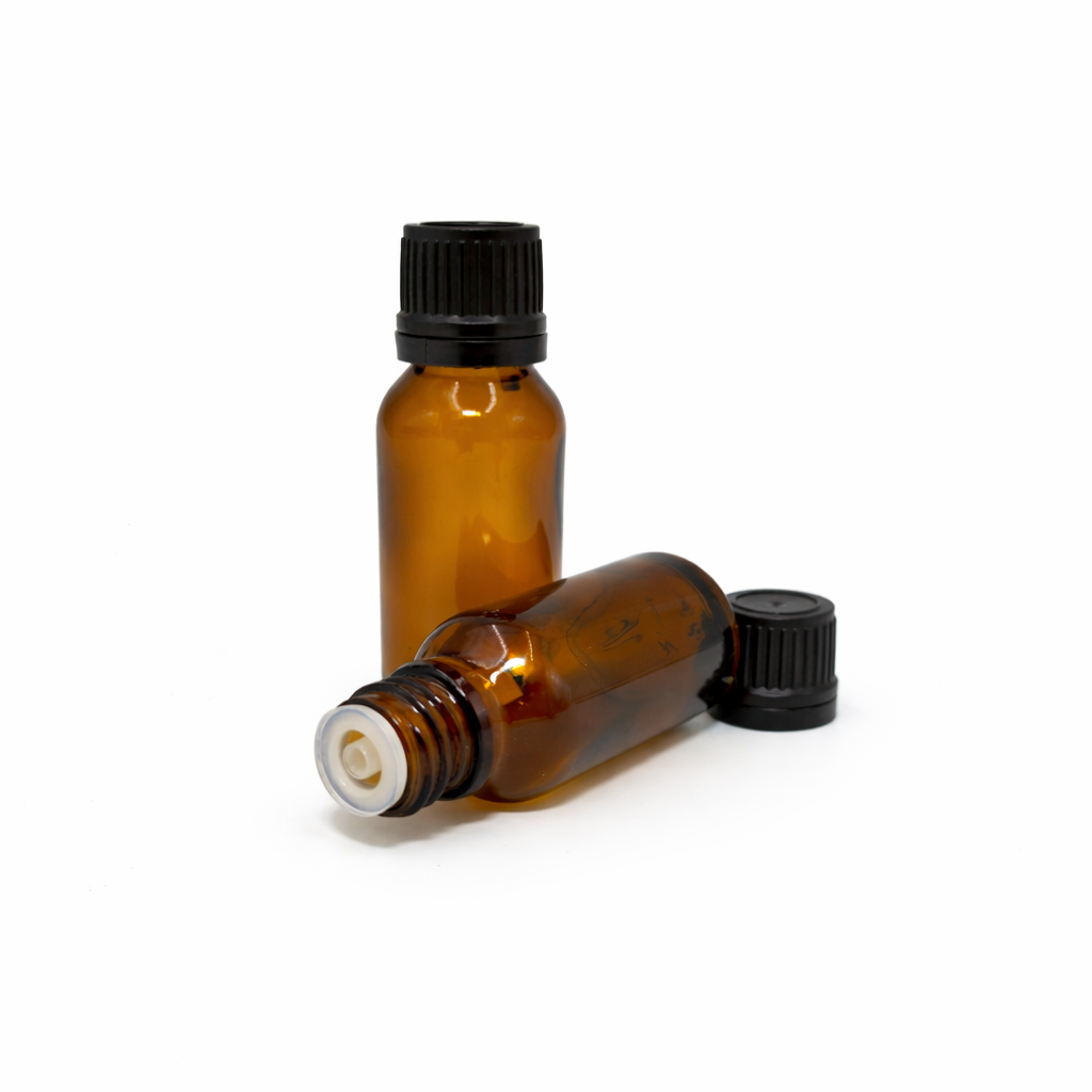 20ml Amber Dropper Bottle – Flat Cap & Insert – Black