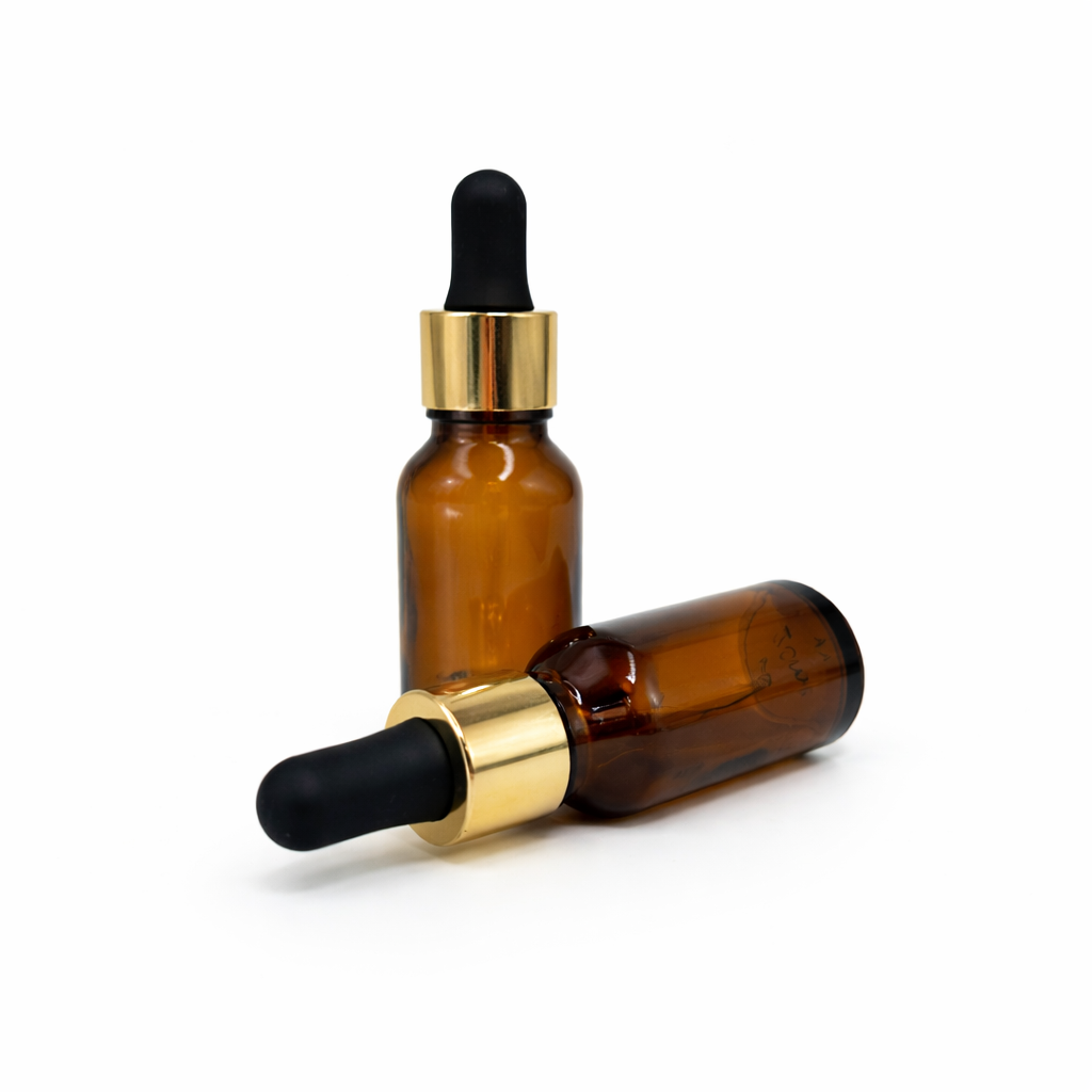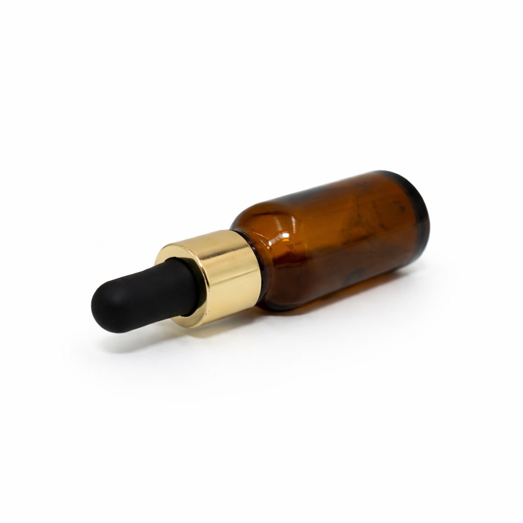 20ml Amber Dropper Bottle – Gold Cap & Black Teet