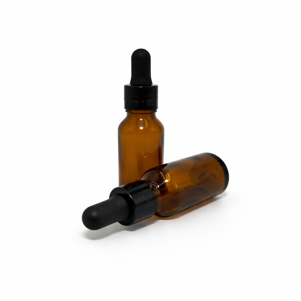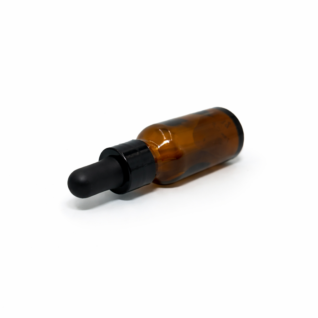 20ml Amber Dropper Bottle – Shiny Black Cap & Black Teet