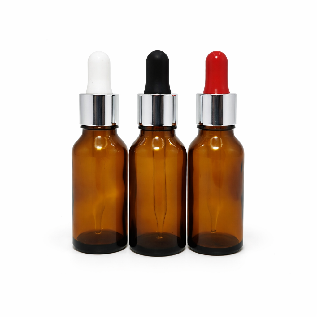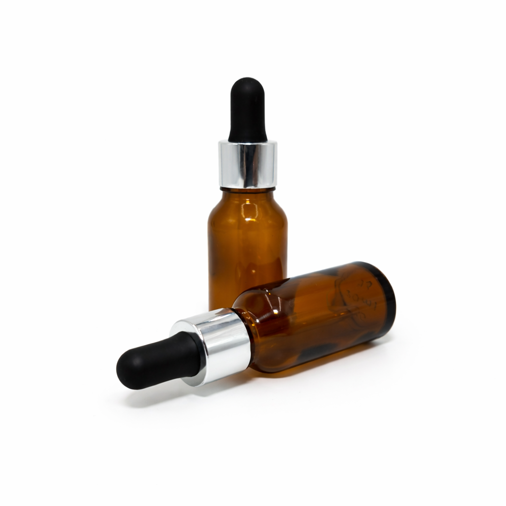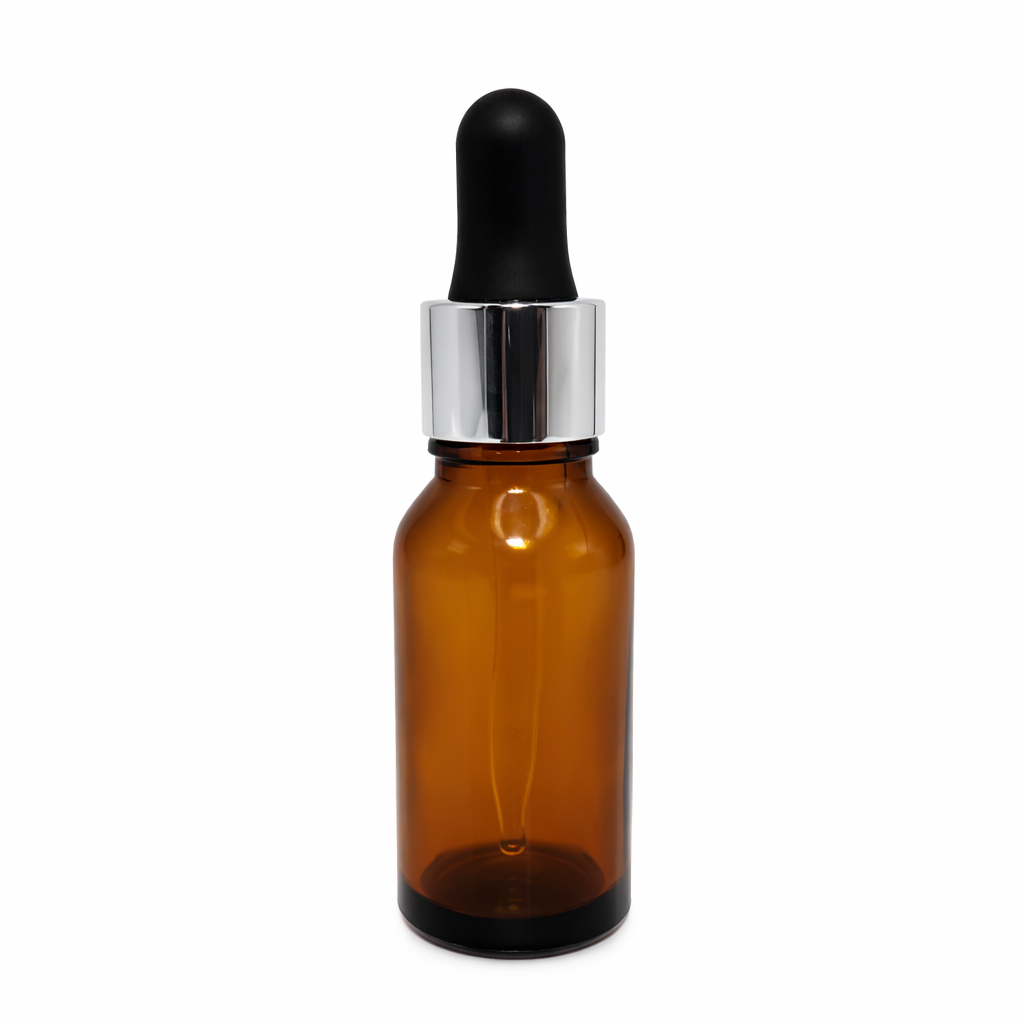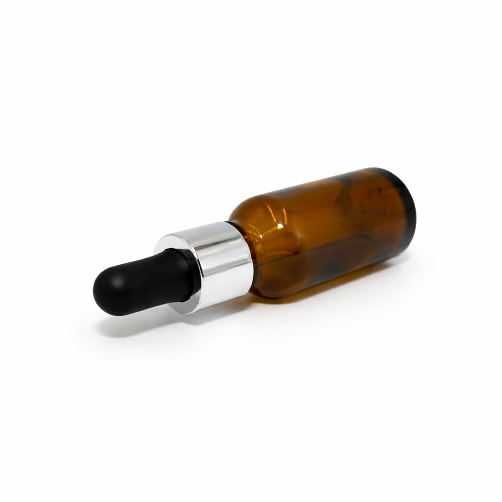 20ml Amber Dropper Bottle – Silver Cap & Black Teet