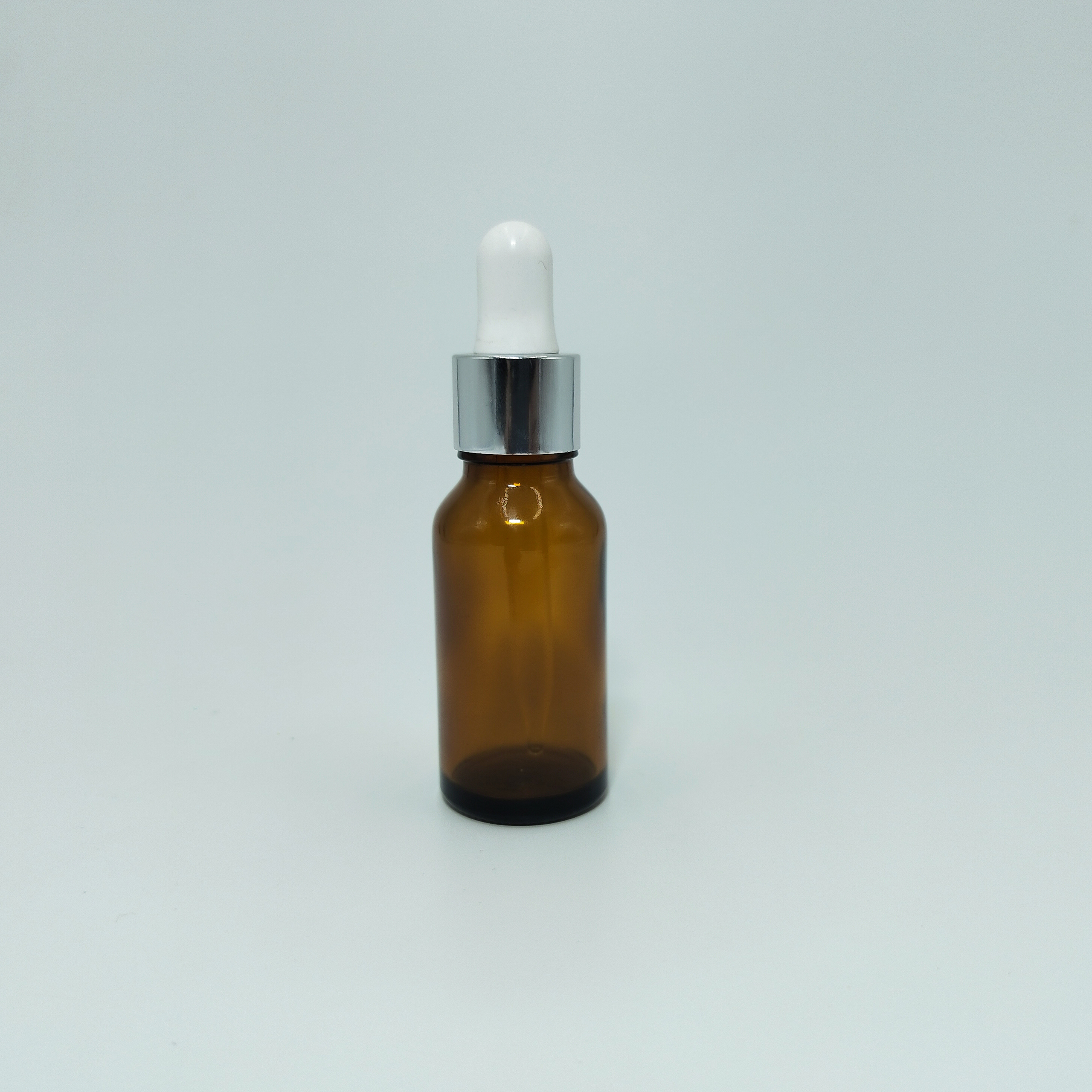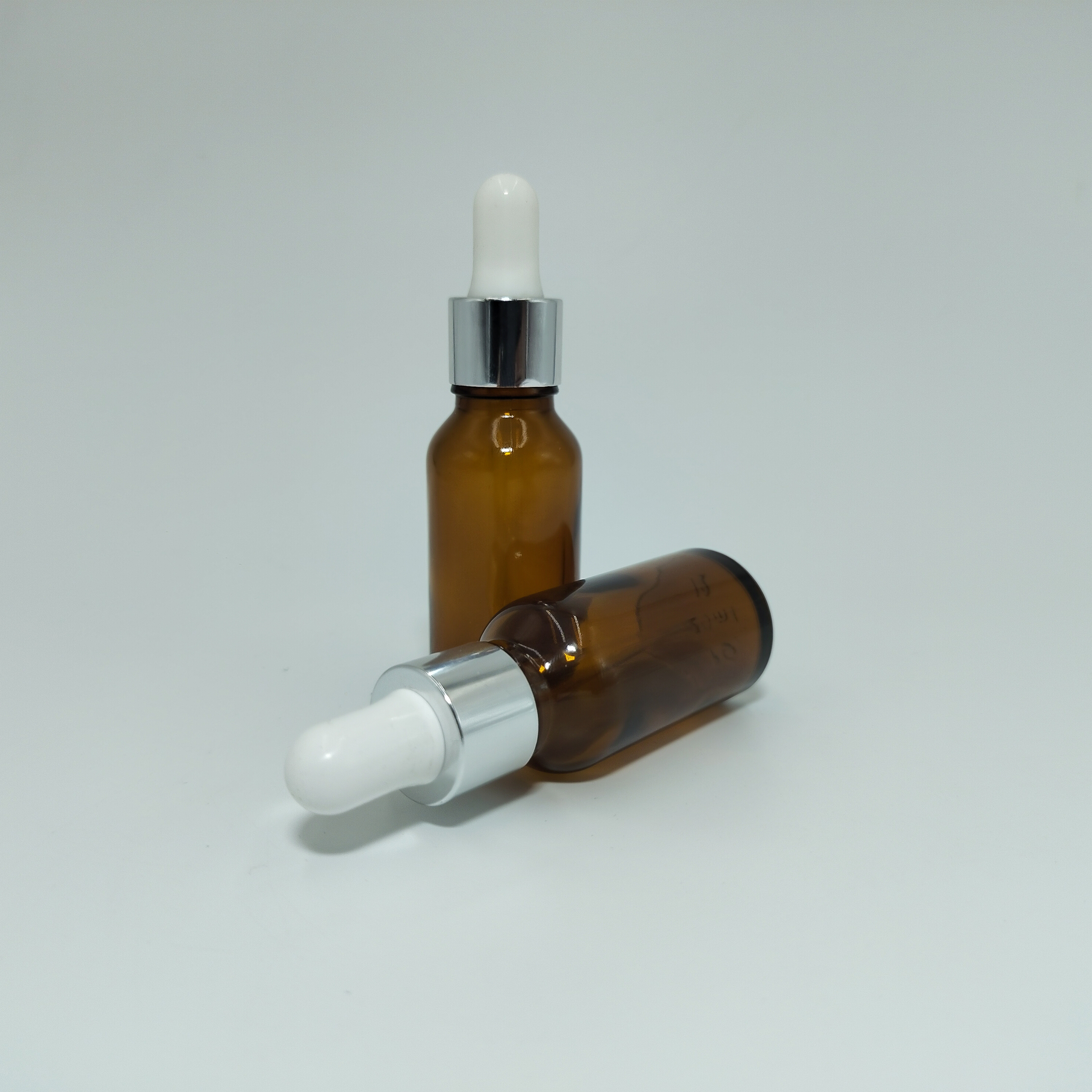 20ml Amber Dropper Bottle – Silver Cap & White Teet