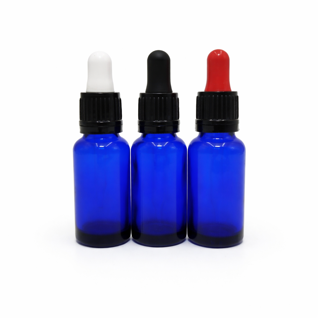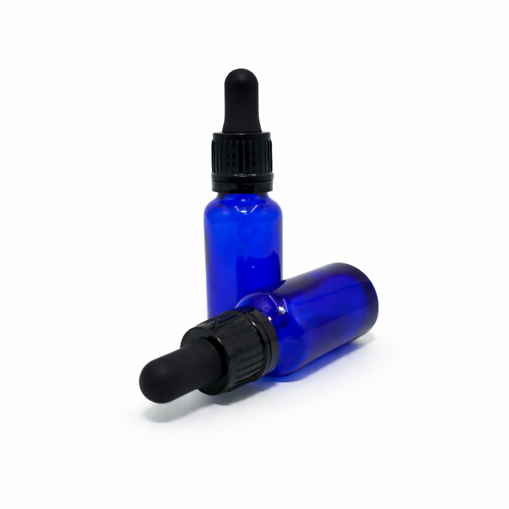 20ml Blue Dropper Bottle – Flat Black Cap with Seal & Black Teet
