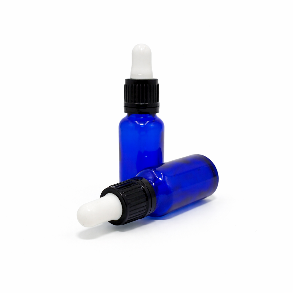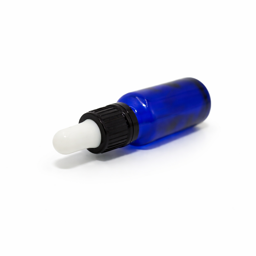 20ml Blue Dropper Bottle – Flat Black Cap with Seal & White Teet
