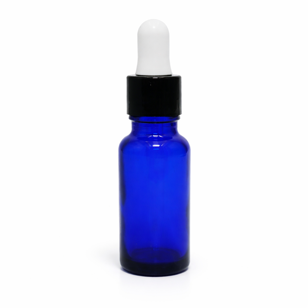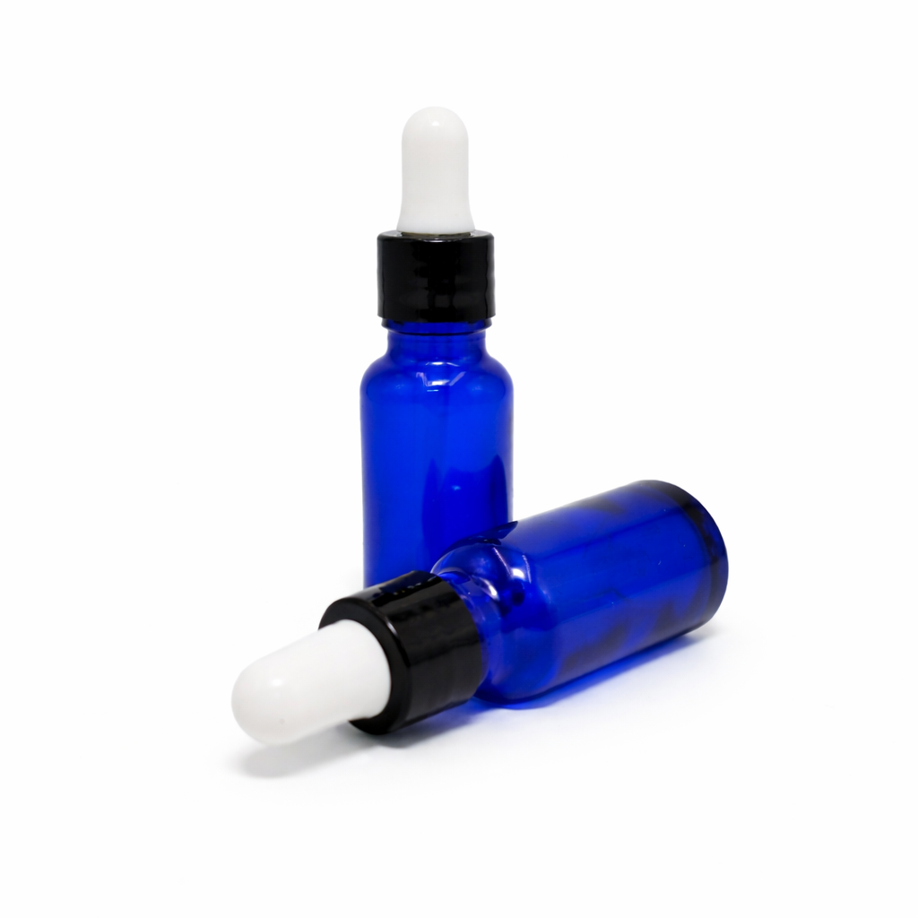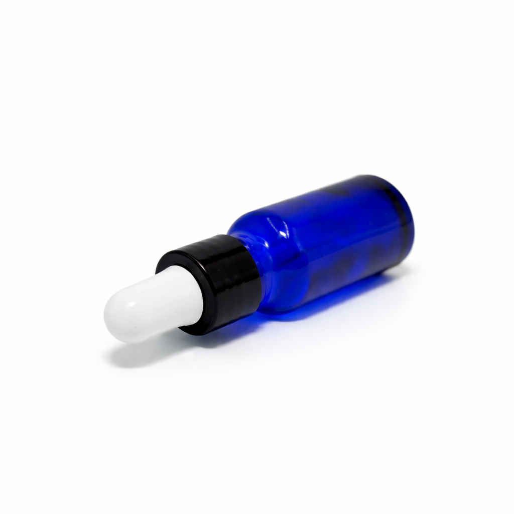 20ml Blue Dropper Bottle – Shiny Black Cap & White Teet