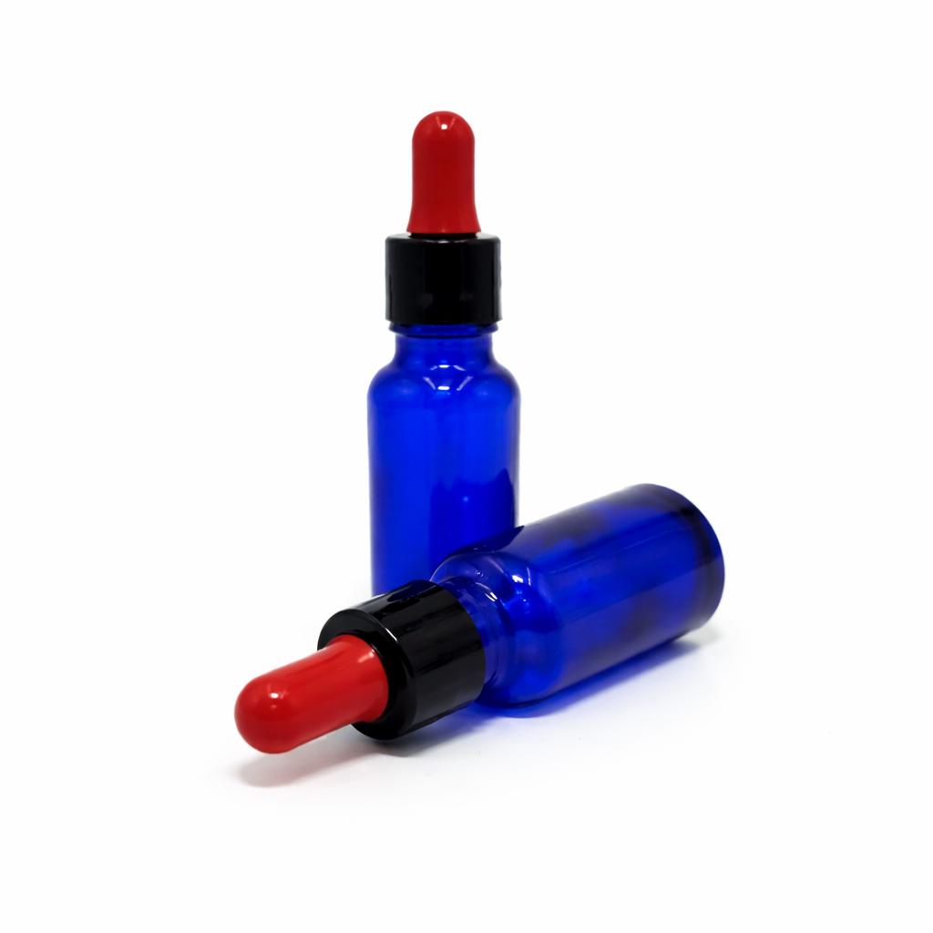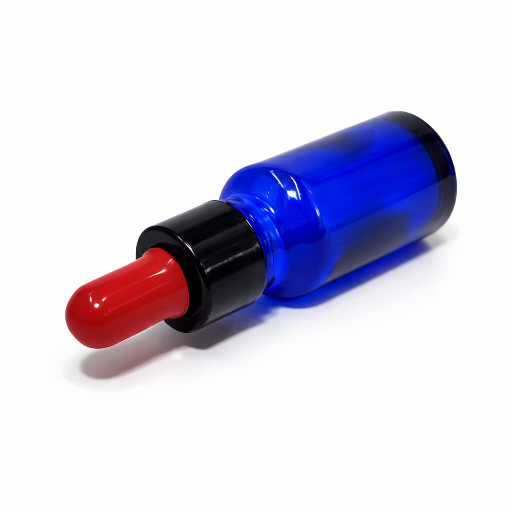 20ml Blue Dropper Bottle – Shiny Black Cap & Red Teet