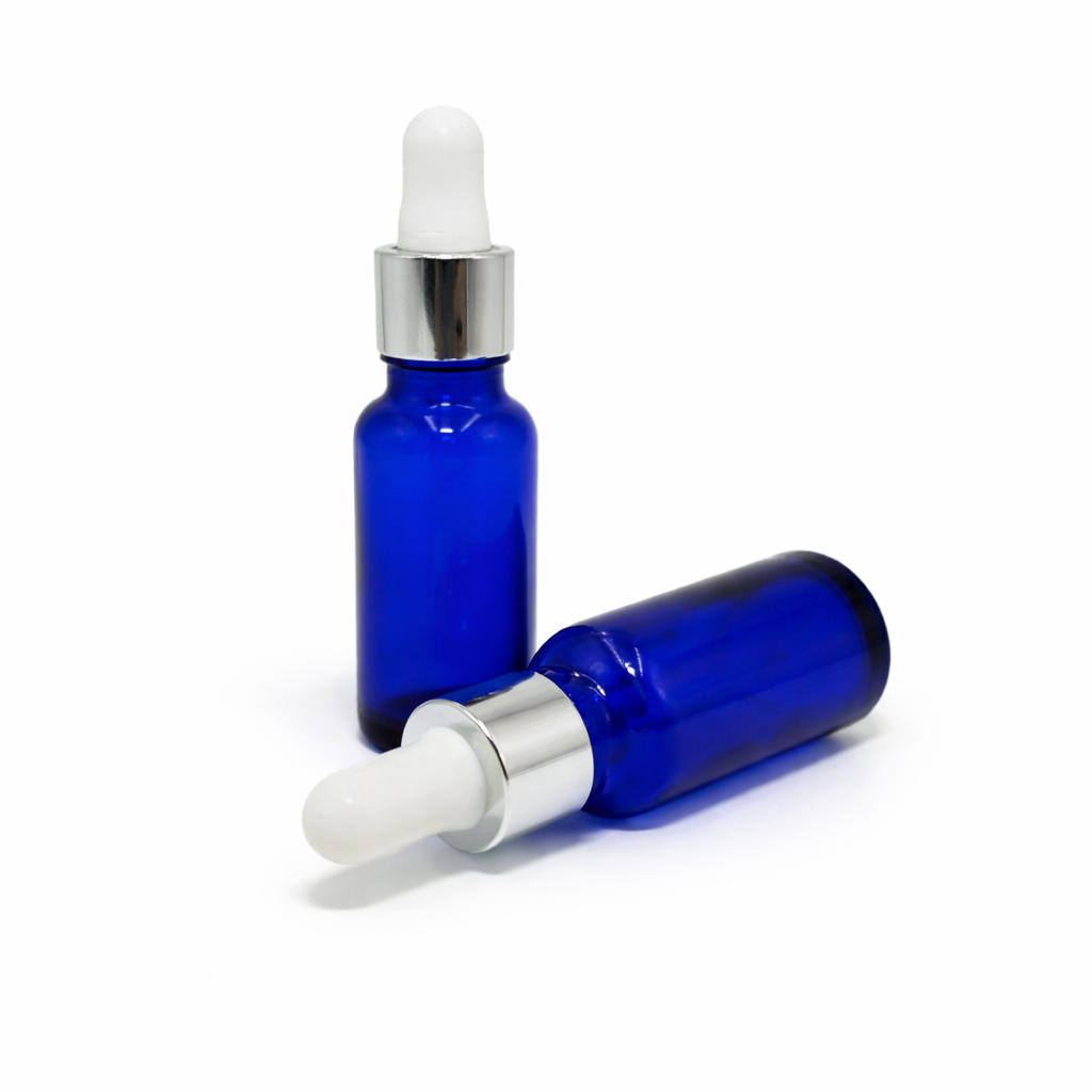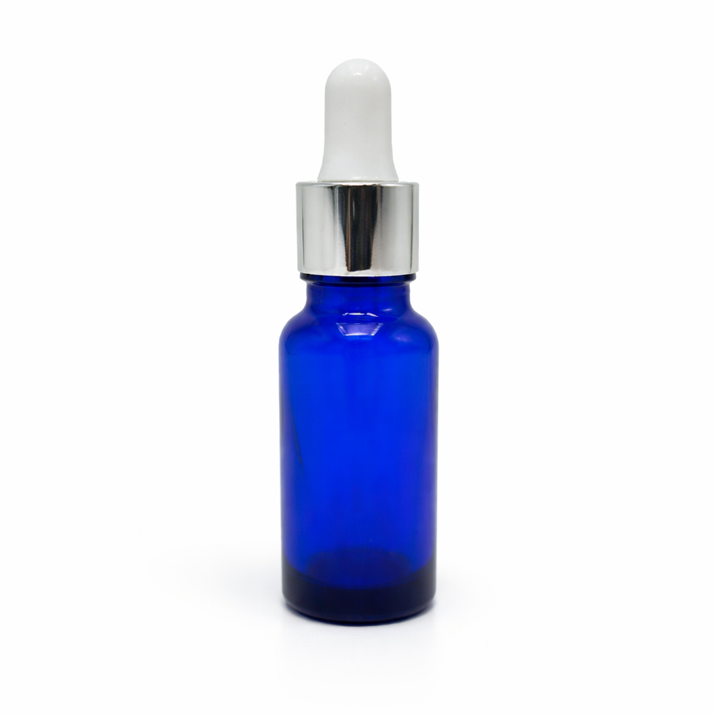 20ml Blue Dropper Bottle – Silver Cap & White Teet