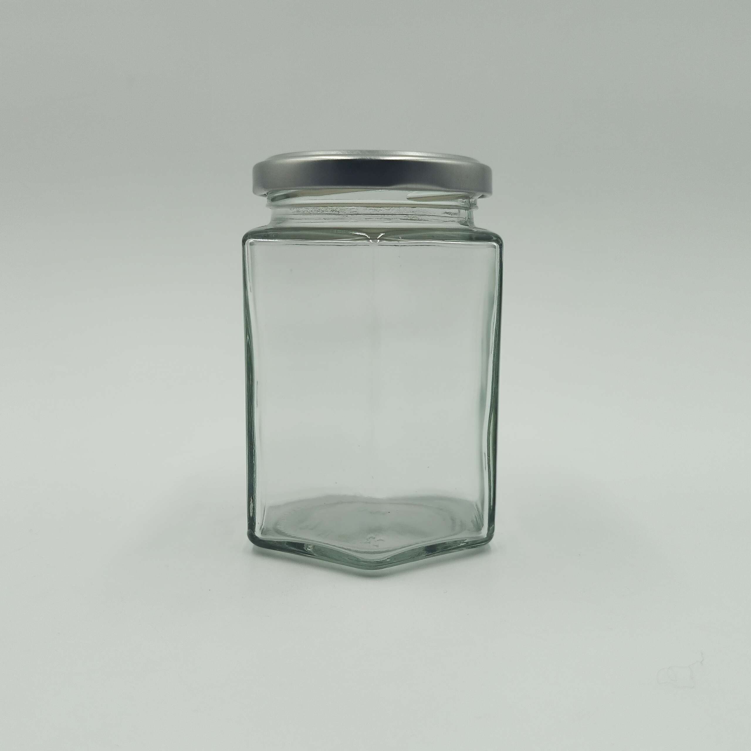 300ml Hexagonal Jar with 63mm Lug Cap – Silver