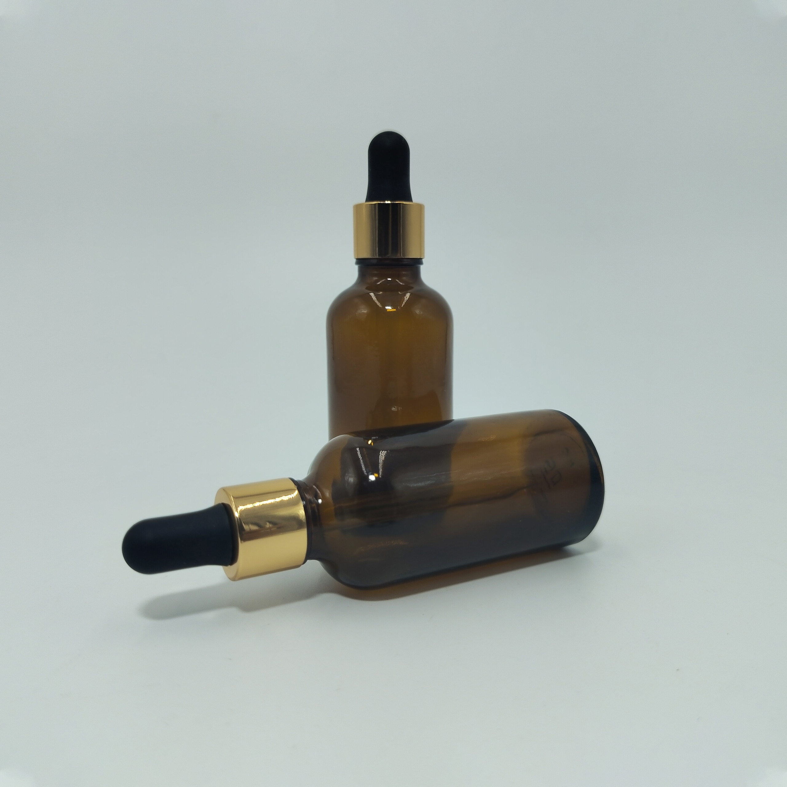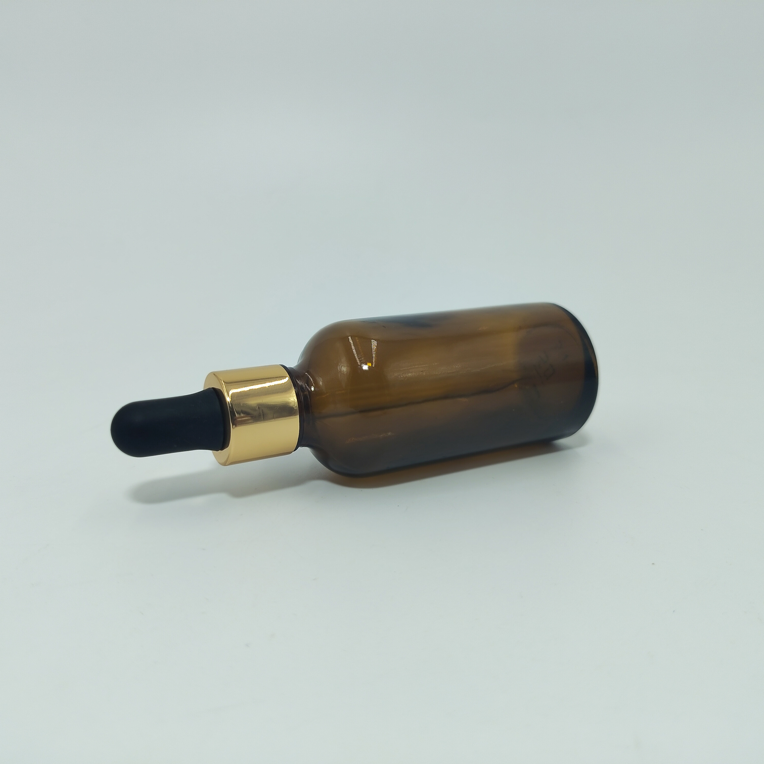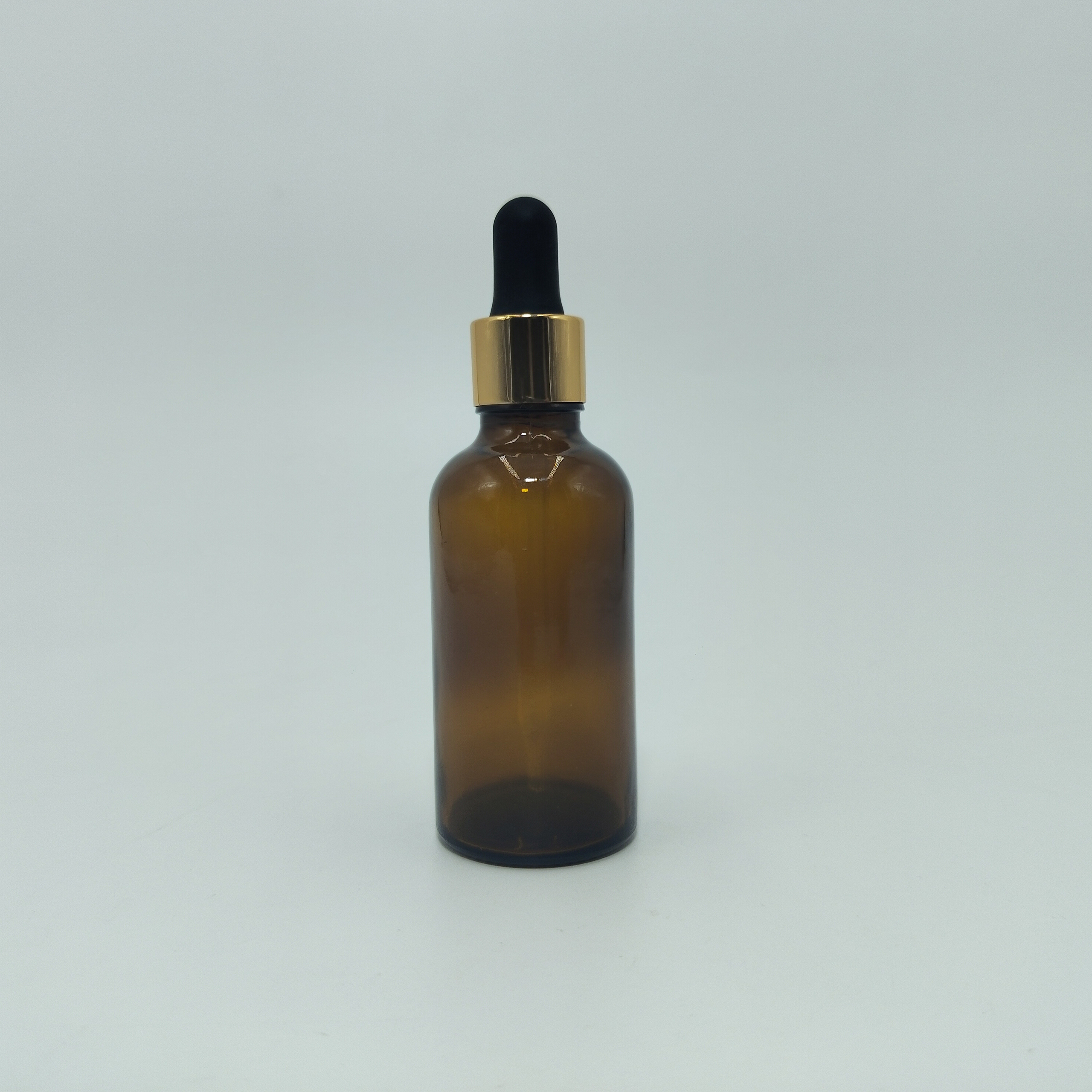 50ml Amber Dropper Bottle – Gold Cap & Black Teet