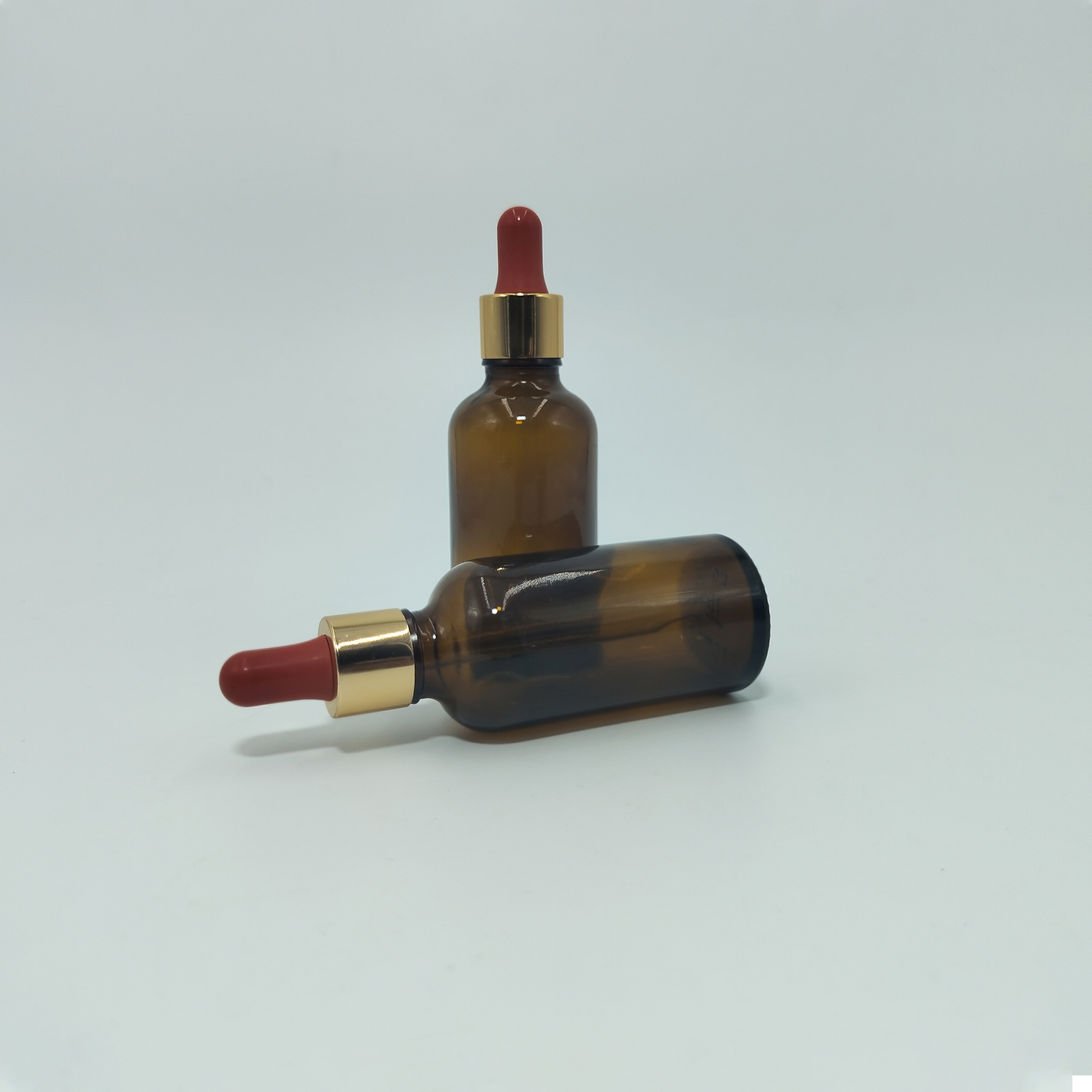 50ml Amber Dropper Bottle – Gold Cap & Red Teet