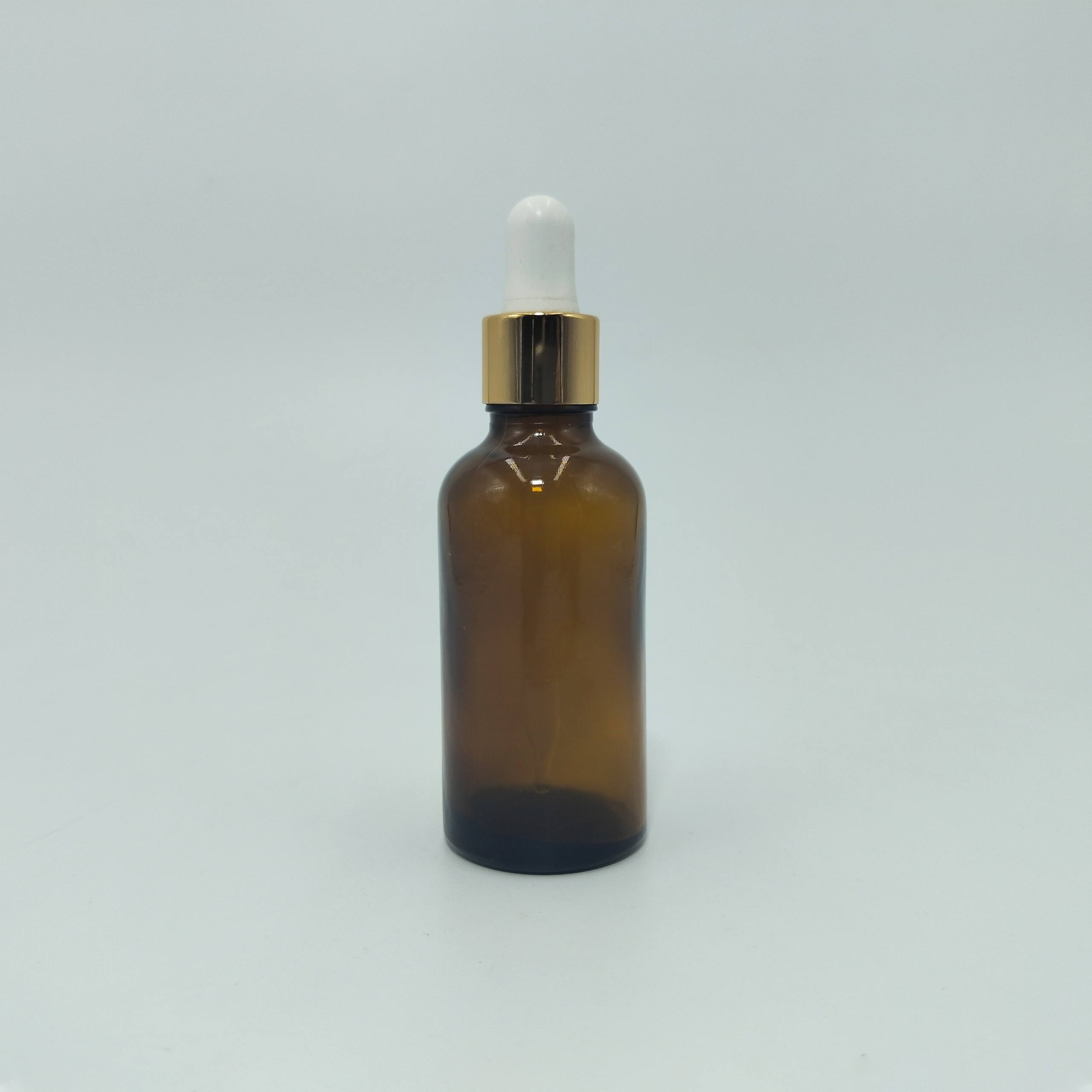 50ml Amber Dropper Bottle – Gold Cap & white Teet