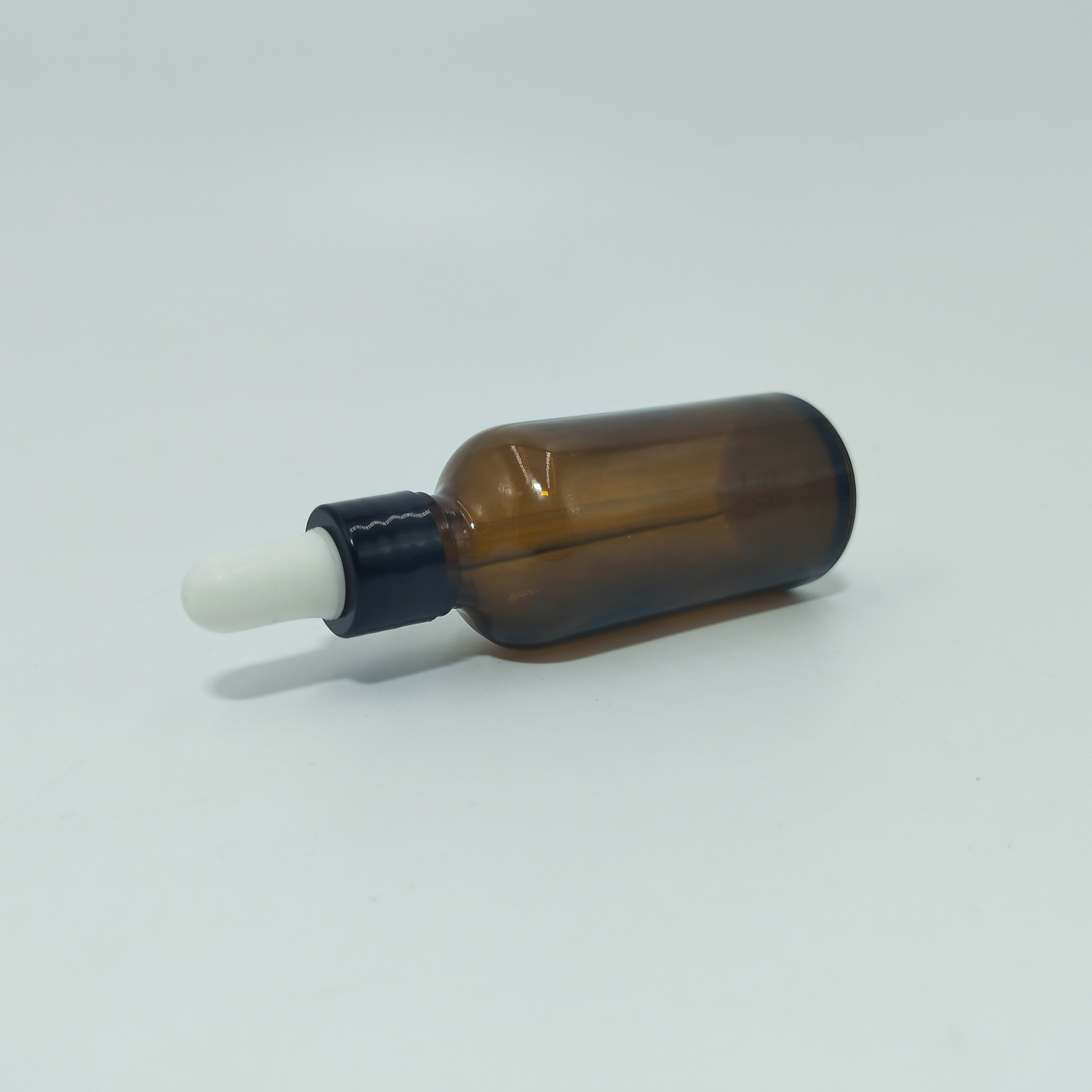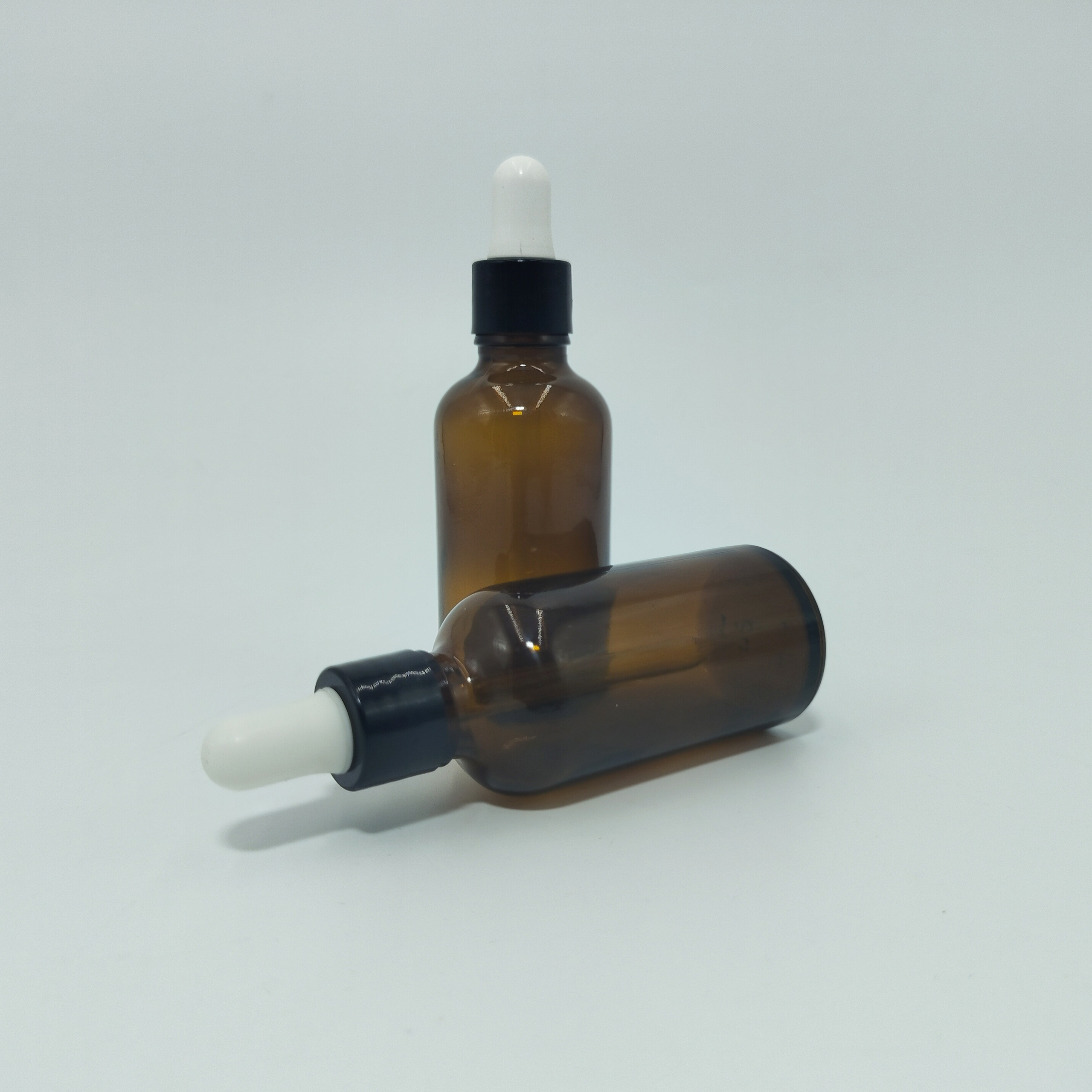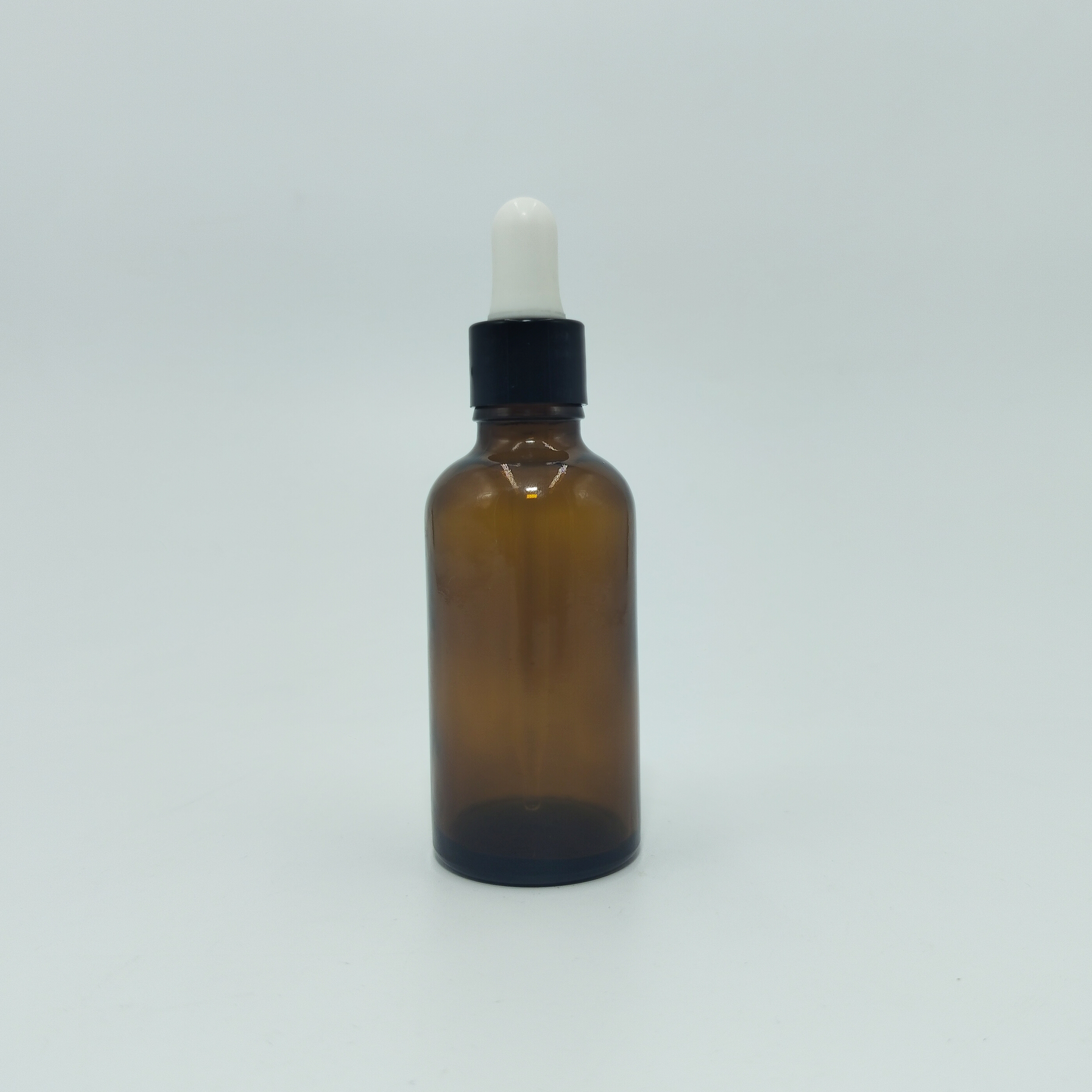 50ml Amber Dropper Bottle – Shiny Black Cap & White Teet