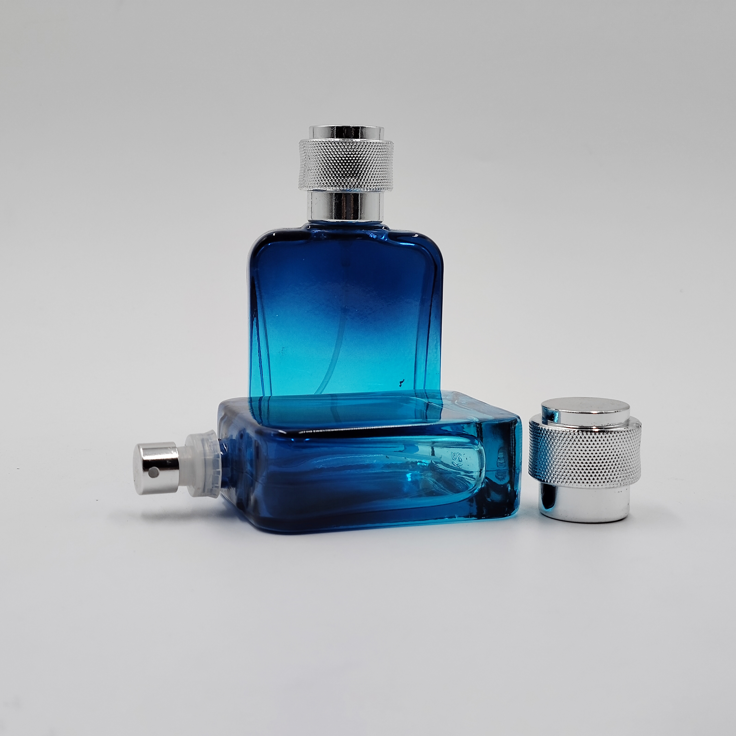 50ml Square Spl Perfume Bottle – Blue – Selection Cap – Silver